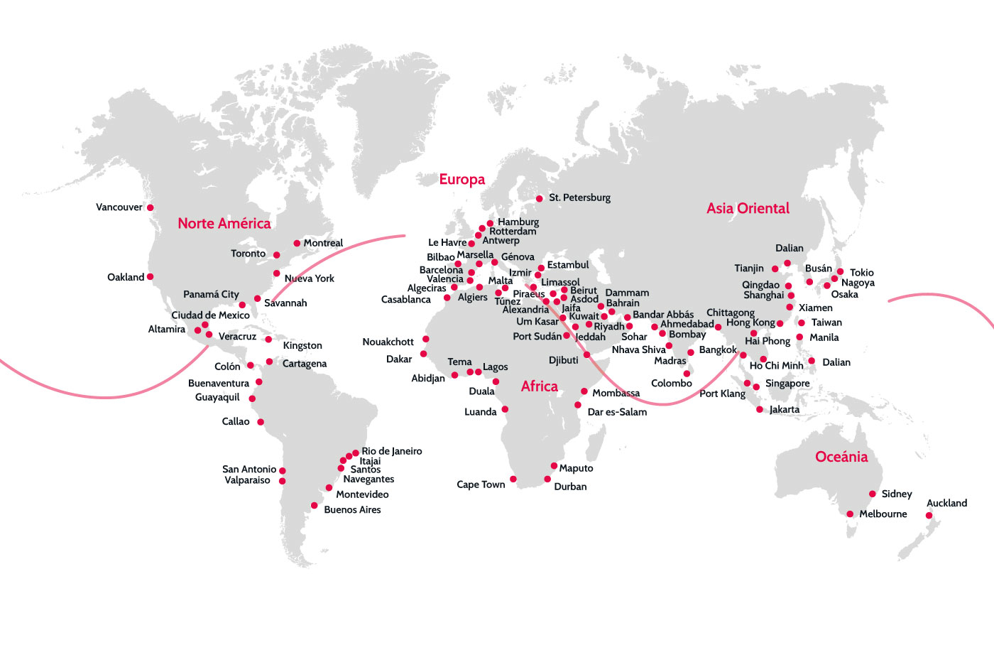 Maritime routes in FCL and LCLRutas marítimas en FCL y LCL